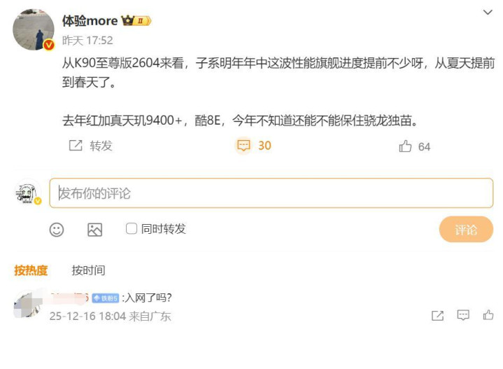 更为枢纽的是,在小米17 Ultra信息曝光的同期,对于红米K90至尊版也传出了新的发布时刻线,让用户直呼节律加快了。