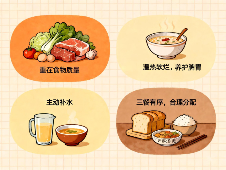食品追求温热软烂,养护脾胃:多经受炖、煮、蒸、烩的烹调样式。食材选拔上,可稳健增多温性食品比例,如姜、葱、蒜、羊肉、鸡肉等。若想食用生果,可琢磨温水浸泡或轻度加热,如蒸苹果、煮梨水,既保留养分,又幸免寒凉刺激。